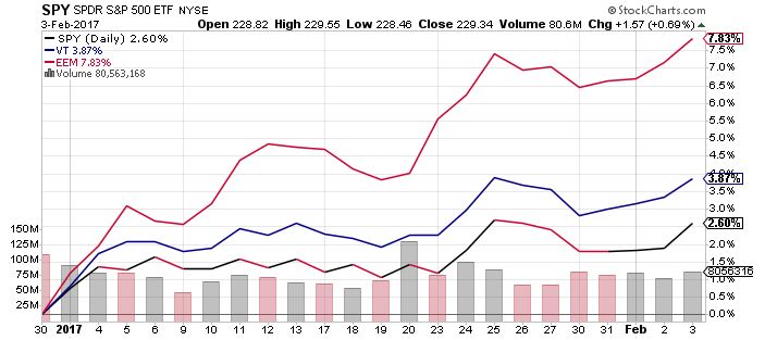 The good start is being driven partially by momentum carrying over from last year. Investors were happy to get past the uncertainty of the election.